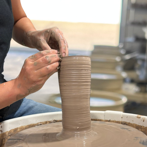 Join Nadine and learn how to bring height to your forms! In this 2-hour workshop, participants will work with Nadine to throw pieces as tall as they can, learning the techniques required to improve the height and stability of their cylinders.